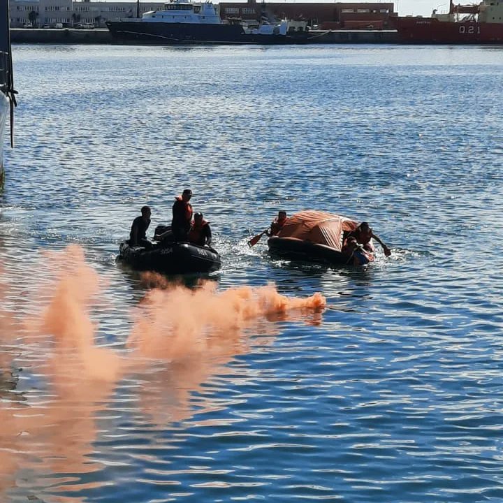 Las acciones también hicieron foco en la norma ISO 9650-1 que refiere a la navegación de altura, tanto en buques de altamar como transoceánicos, donde no faltaron las prácticas con señales de auxilio para abandono de embarcaciones en casos de emergencia.