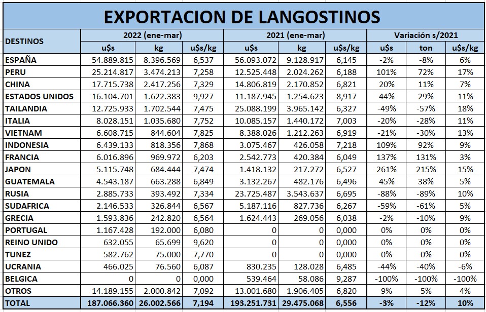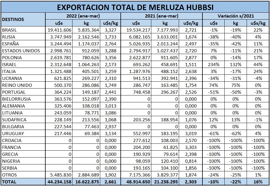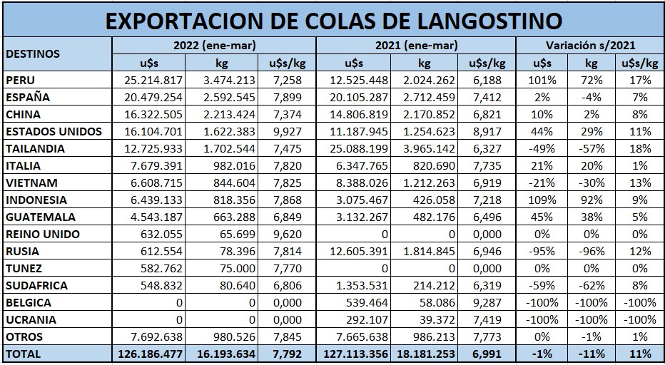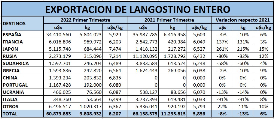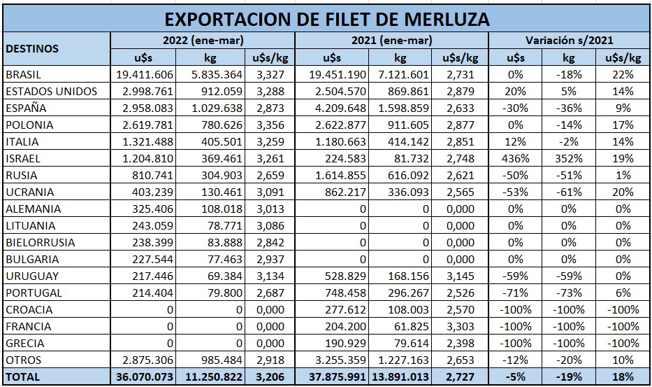 Los informes oficiales generados por el INDEC, acerca de las exportaciones del primer trimestre, muestran un amesetamiento en los volúmenes en dólares del producto industrializado de Argentina hacia el mundo en pescados y mariscos.
