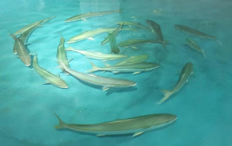 De la destreza de capturar vivos reproductores juveniles de pez lim贸n, dependi贸 la marea. Es evidente que la tripulaci贸n del BIP Mar Argentino esta avezada en este tipo de manejo. Fueron capturados con el mejor know how de los mismos y sin causar impacto en su estructura, 31 pez lim贸n que con minucioso cuidado fueron depositados en los piletones del INIDEP para reemplazar viejos reproductores que fueron criados desde su etapa juvenil.
