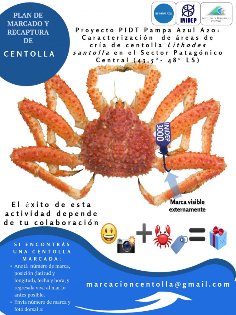Para lograr un reporte efectivo de las centollas recapturadas se empleará un sistema de recompensas, en muestra de agradecimiento para aquellos miembros de las tripulaciones de pesca que aporten los datos de recaptura, (antiguamente en la pesquería de langostino, el Instituto otorgaba un reloj a quienes encontraban un espécimen marcado, pero…. los tiempos cambiaron), por lo cual se deberá registrar la fecha y hora, la posición geográfica, el número de precinto, si tiene huevos o no y, de ser factible, realizar una fotografía dorsal.