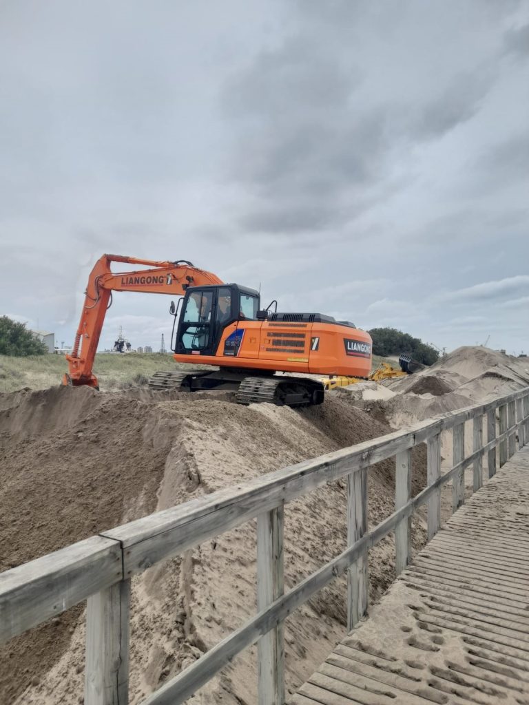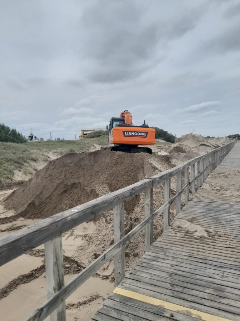 “Las palas mecánicas ya están trabajando durante estos días para retirar importante cantidad de arena que por acción de los vientos se acumula a los lados, sobre y debajo de la estructura peatonal de más de 1000 metros de extensión.”, consignaron de manera oficial.