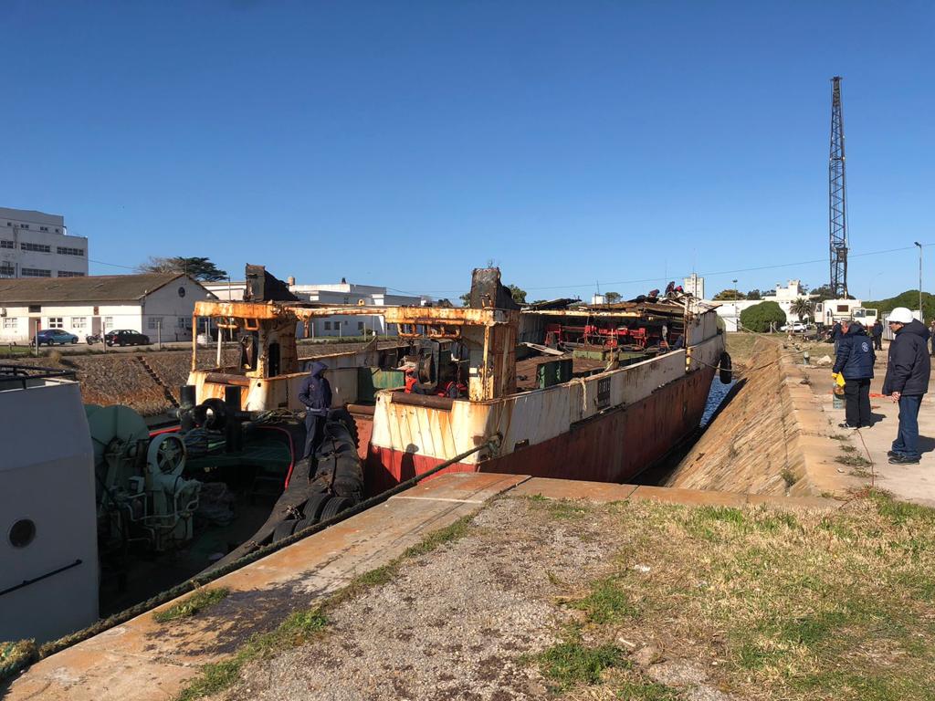 La tarea comenzó operativamente el día viernes a las 9.30 de la mañana y tras casi dos horas de movimiento, la embarcación –que ya se encontraba parcialmente desguazada- fue depositada en el lugar destinado para completar su desarme, en el varadero de la BNMDP.