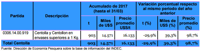 Entre el resto de las especies, se destacan el rendimiento comercial de la vieira, la fuerte suba en la cotización de raya, merluza negra y centolla, aunque con menos volumen respecto a lo observado en el primer trimestre del año pasado.
