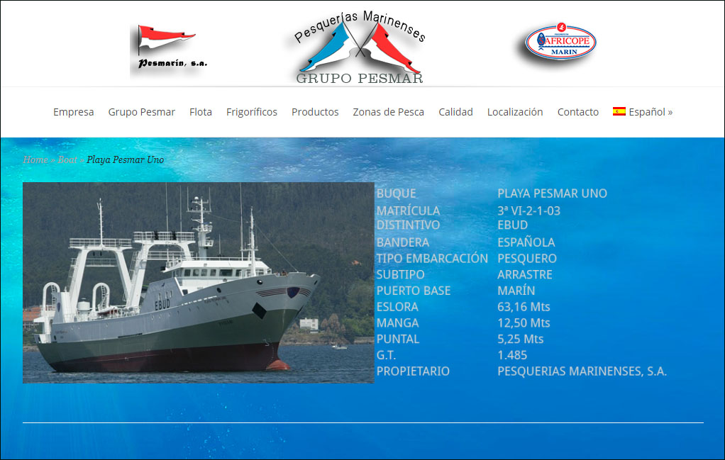 En la web de la empresa se especÃfica que pertenece a PesquerÃas Marinenses S.A. con sede en Pontevedra. El grupo, posee, además otras tres embarcaciones y tiene a la zona FAO 41 (Atlántico Sur) entre sus objetivos para la captura de merluza, calamar, raya, nototenia y róbalo, entre otras especies.