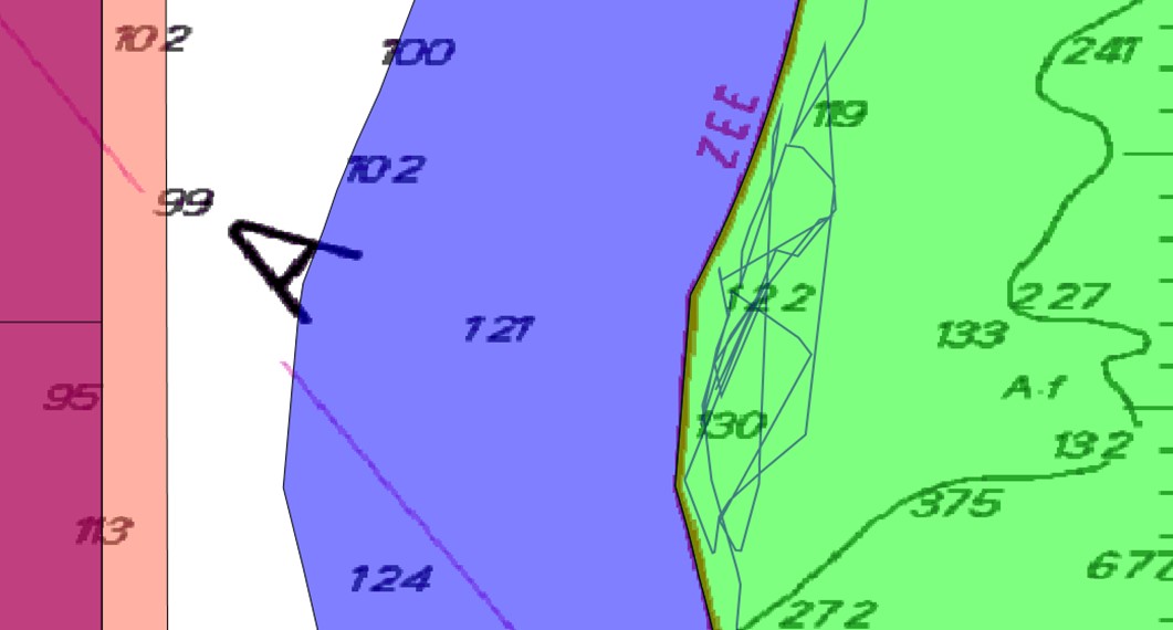 Como documento probatorio, las autoridades remitieron un gráfico con la derrota completa del “Lotaidor” y un detalle de las posiciones más cercanas con indicación de distancia y puntos de referencia de la Ley Ut-supra mencionada.