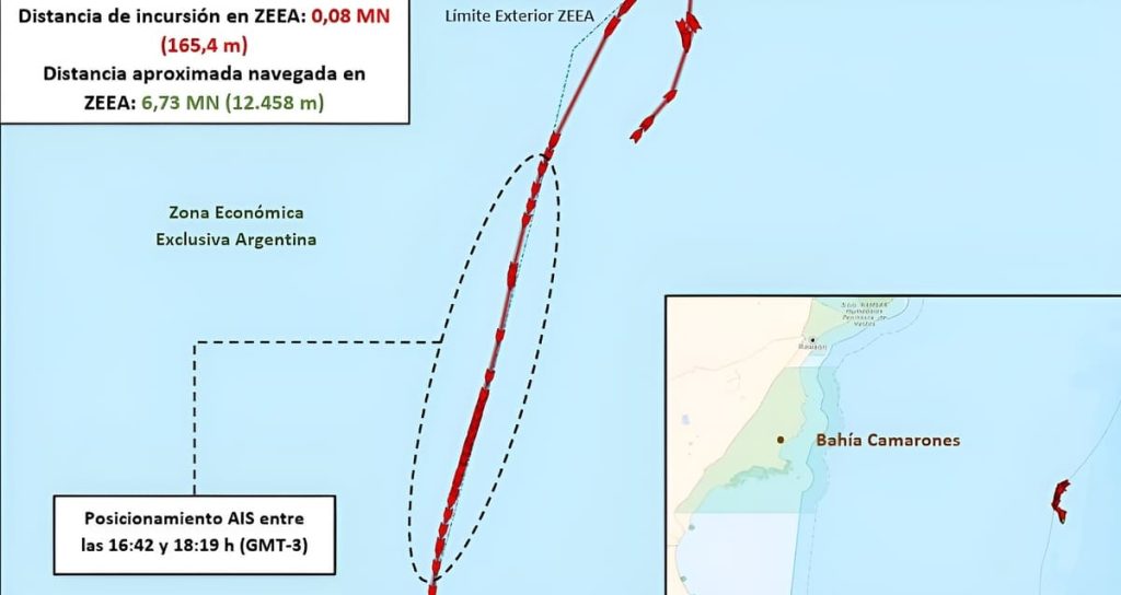 Ciudad Autónoma de Buenos Aires, 11 de enero de 2026. En una acción concreta de defensa del Mar Argentino, la Prefectura Naval Argentina (PNA) detectó la incursión de un buque pesquero extranjero dentro de la Zona Económica Exclusiva Argentina (ZEEA) con comportamiento operativo compatible con maniobras, patrones cinéticos y velocidades de pesca. El episodio constituye una vulneración de la soberanía y de los derechos soberanos de la República Argentina sobre sus recursos vivos, un límite nacional que no admite ambigüedades en la irrevocable defensa de la Nación.