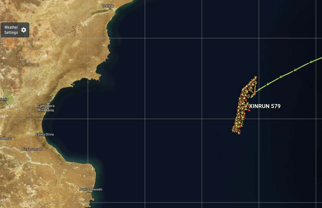El XinRun 579, un moderno arrastrero había zarpado hace 40 días desde el puerto de Shidao, en la provincia china de Shandong, y su tripulación es mayoritariamente de origen chino, portando bandera de conveniencia de Vanuatu. Sin embargo, no se dispone de información pública que identifique a la empresa china propietaria o responsable del XinRun 579. Este tipo de buques suelen operar bajo banderas de conveniencia, lo que puede dificultar la identificación de sus verdaderos propietarios u operadores. La falta de transparencia en la propiedad y operación de algunos buques pesqueros puede estar asociada a prácticas de pesca ilegal, no declarada y no reglamentada (INDNR). Este tipo de actividades representa una amenaza significativa para la sostenibilidad de los recursos marinos y la economía de los Estados ribereños.