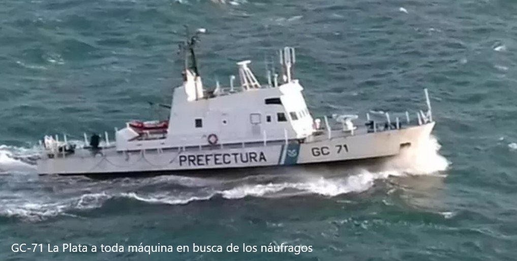 En este momento, continúa el rastrillaje en la zona para hallar al resto de la tripulación del BP siniestrado. En comunicación con personal de la zona, nos indicaron que en la noche de ayer hubo una tormenta eléctrica muy importante y previo a eso algunas ráfagas de viento no mayores a 20km/h del sector ENE.