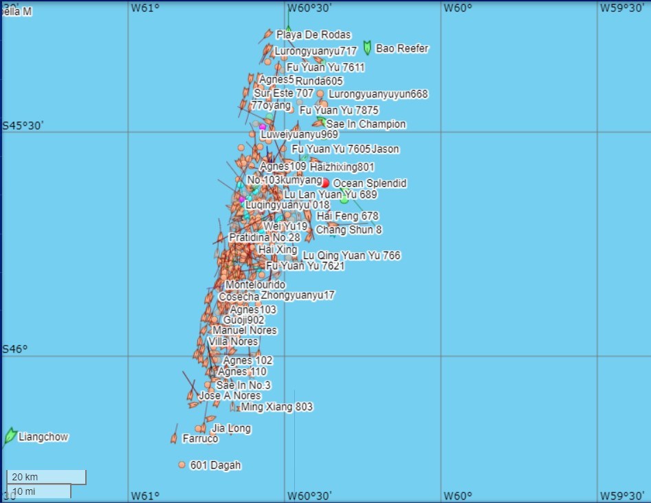Esos datos indican que sobre la milla 201 se encontraban exactamente 431 buques a la altura de la ciudad chubutense de Comodoro Rivadavia y Camarones.