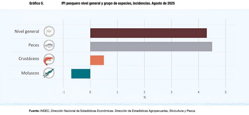 El INDEC inform贸 que la pesca creci贸 4,3% interanual en agosto de 2025, aunque acumula una baja del 21% frente a 2024. La acuicultura, con datos retroactivos desde 2023, se incorpora por primera vez al 铆ndice pesquero nacional.