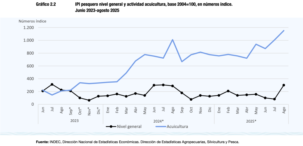 Entre las novedades del informe, el INDEC anunci贸 la incorporaci贸n de la acuicultura al c谩lculo del 铆ndice pesquero, utilizando datos retroactivos desde junio de 2023.