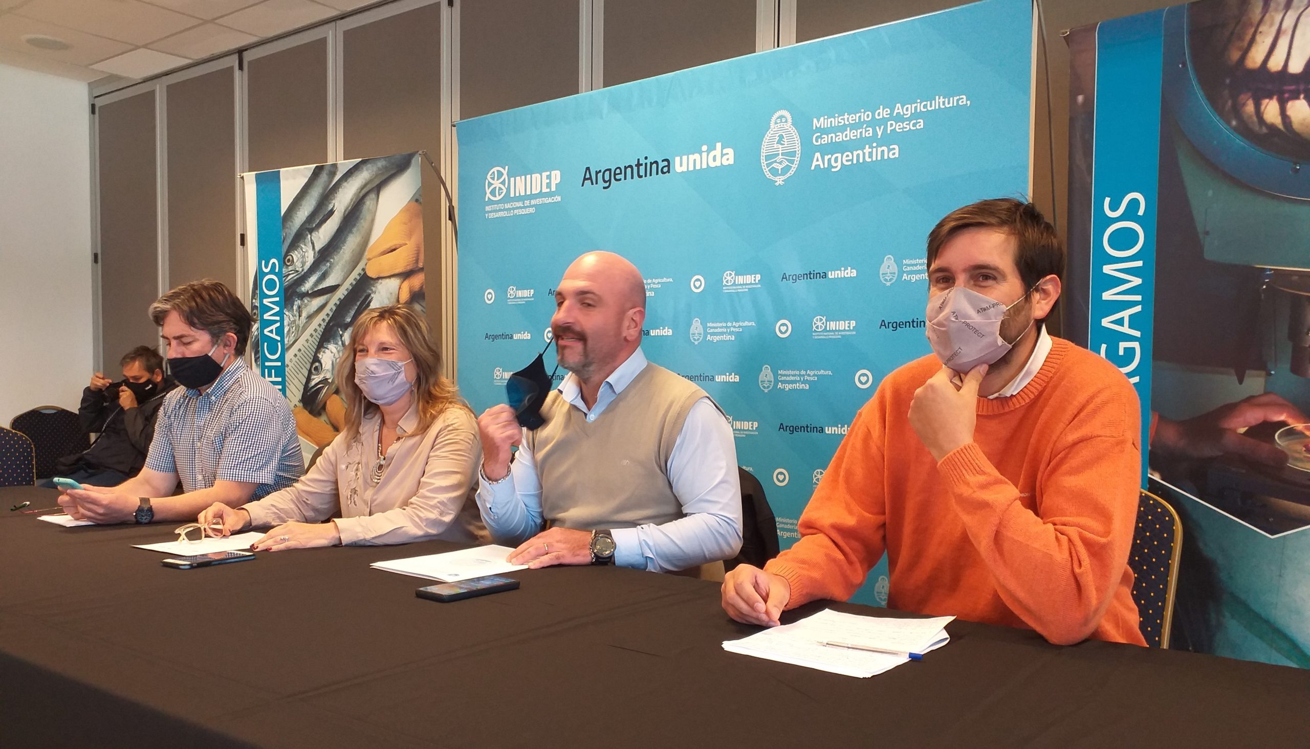 Encabezaron la presentación la Dra. Claudia Carozza (Directora Nacional de Investigación), el Lic. Claudio Ruarte (jefe del Programa Pesquería de Peces Demersales Costeros), el Dr. Sebastián Agliano (Gerente de la Asociación de Embarcaciones de Pesca Costera y Fresquera) y el Lic. Diego Solimeno (Investigador de la UNMDP) todos ellos en forma presencial, más Gustavo Antón (Director de Actividades Pesqueras y Acuicultura de la Provincia de Buenos Aires), quién lo hizo en forma virtual.