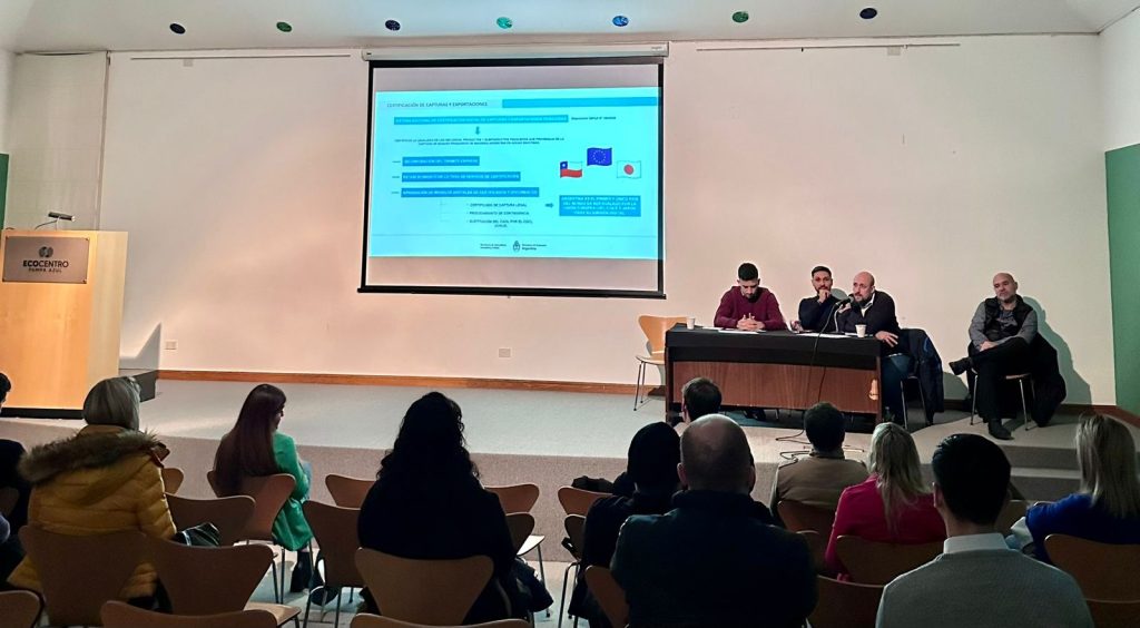 El encuentro se llevó a cabo este jueves en el Ecocentro – Pampa Azul, en la ciudad chubutense de Puerto Madryn, en una Mesa Técnica dirigida por el Director Nacional de Coordinación y Fiscalización Pesquera, Dr. Julián Suárez junto al Responsable de la Unidad de Coordinación Pesquera, Dr. Tomás Cvanchich y parte de su equipo técnico, quienes destacaron los excelentes resultados de la implementación del Módulo ´Transacciones Comerciales´ en estos primeros seis meses de puesta en vigencia.