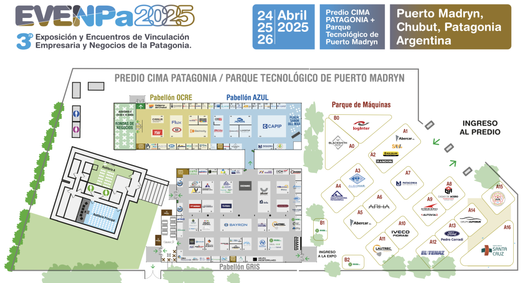 Desde hoy, jueves 24 y hasta el sábado 26 de abril, Puerto Madryn será sede de la tercera edición del EVENPa 2025, la Exposición de Vinculación Empresarial de la Patagonia, que se consolida como el evento multisectorial más relevante del sur argentino. La actividad comienza hoy a las 11 horas en el predio de Cima Patagonia y el Parque Tecnológico, ubicado sobre Avenida Juan XXIII Norte Nº 1970.