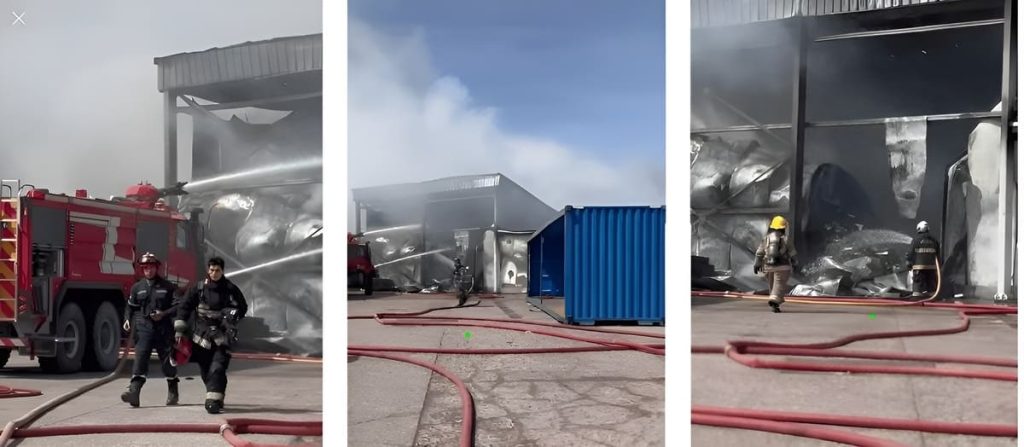 Puerto Madryn / Chubut. Un incendio se registr贸 este jueves 1 de enero, en el predio perteneciente a la empresa Conarpesa, en la ciudad de Puerto Madryn, donde funciona un sector destinado al acopio de cartones, redes y otros materiales altamente inflamables que quedaron reducidos a su m铆nima expresi贸n. La r谩pida intervenci贸n de los Bomberos Voluntarios permiti贸 contener el avance de las llamas, en un contexto clim谩tico adverso marcado por intensas r谩fagas de viento que alentaban la propagacion de llamas que alcanzaron los 10 metros de altura.