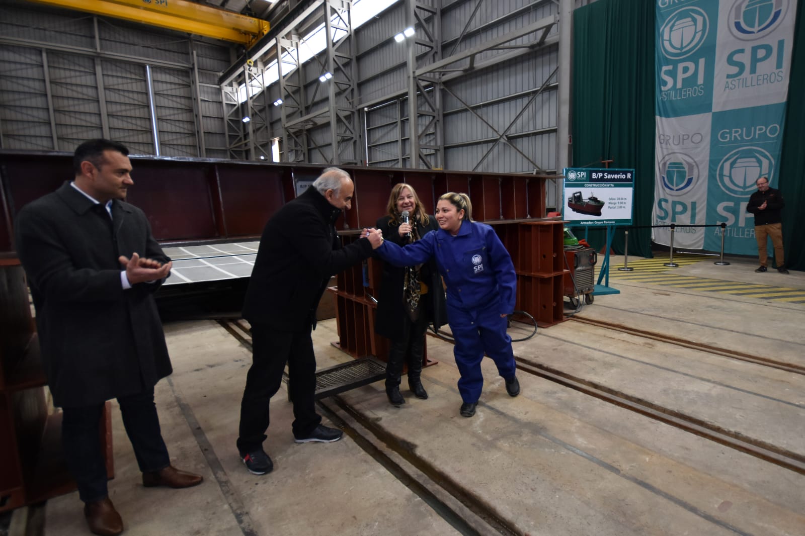 El acto se llevó a cabo en la nueva nave industrial que forma parte de las inversiones realizadas por el astillero marplatense para ampliar su capacidad productiva y que fue adaptado para la ceremonia.