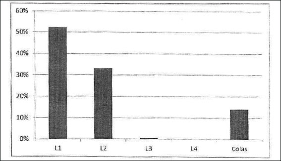 - En tanto, la categoría L3 representó tan sólo el 0,4 por ciento; mientras que el 12 por ciento restante a la producción de colas.