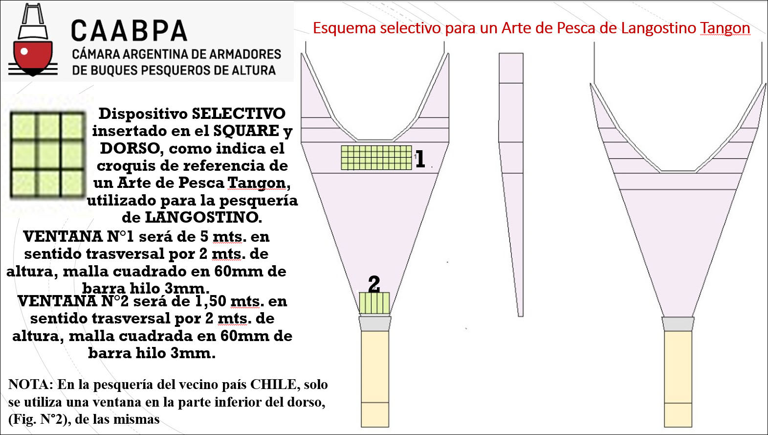 El menún de opciones contempla al Disela II o Hargril. Hacia 2017 también se incorporó al Arsel, desarrollado por Solimeno. Ahora, la Cámara Argentina de Armadores de Buques Pesqueros de Altura propuso la utilización de otro dispositivo, con dos “ventanas” en sentido trasversal.