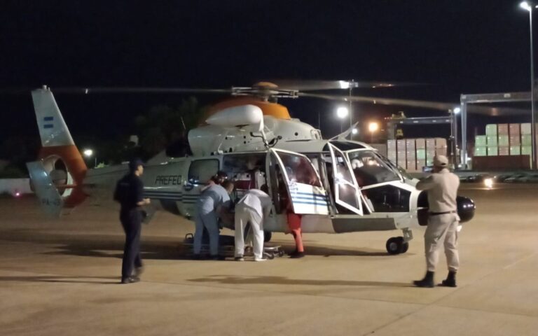 Gustavo Carlos, pr谩ctico del R铆o Paran谩, estableci贸 contacto con las autoridades de Control de Tr谩fico Mar铆timo de PNA, y realiz贸 la consulta con el m茅dico de Sanidad, quien orden贸 la evacuaci贸n. Caso SAR 32/23 PNA.