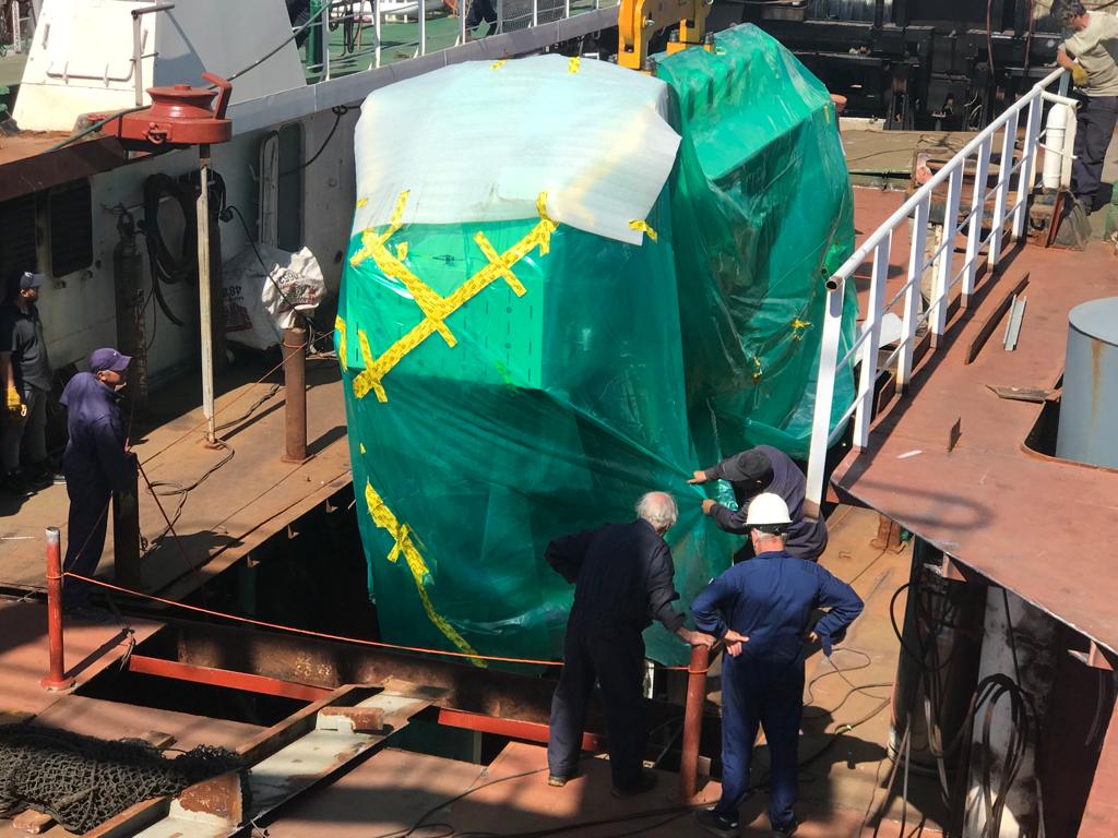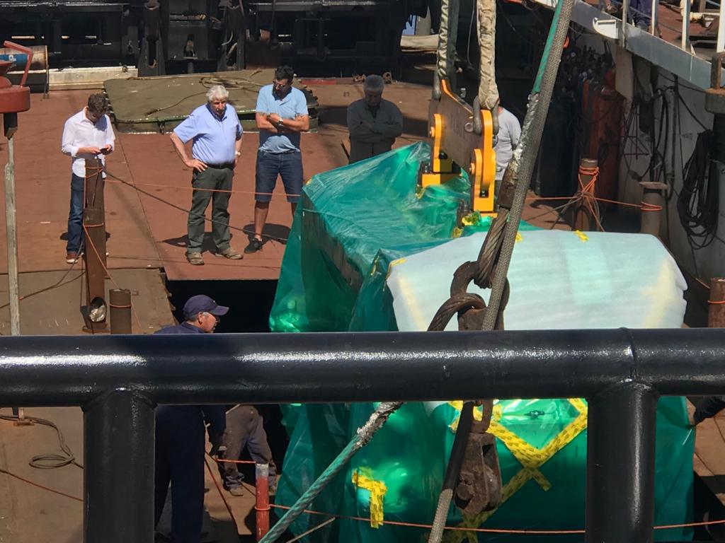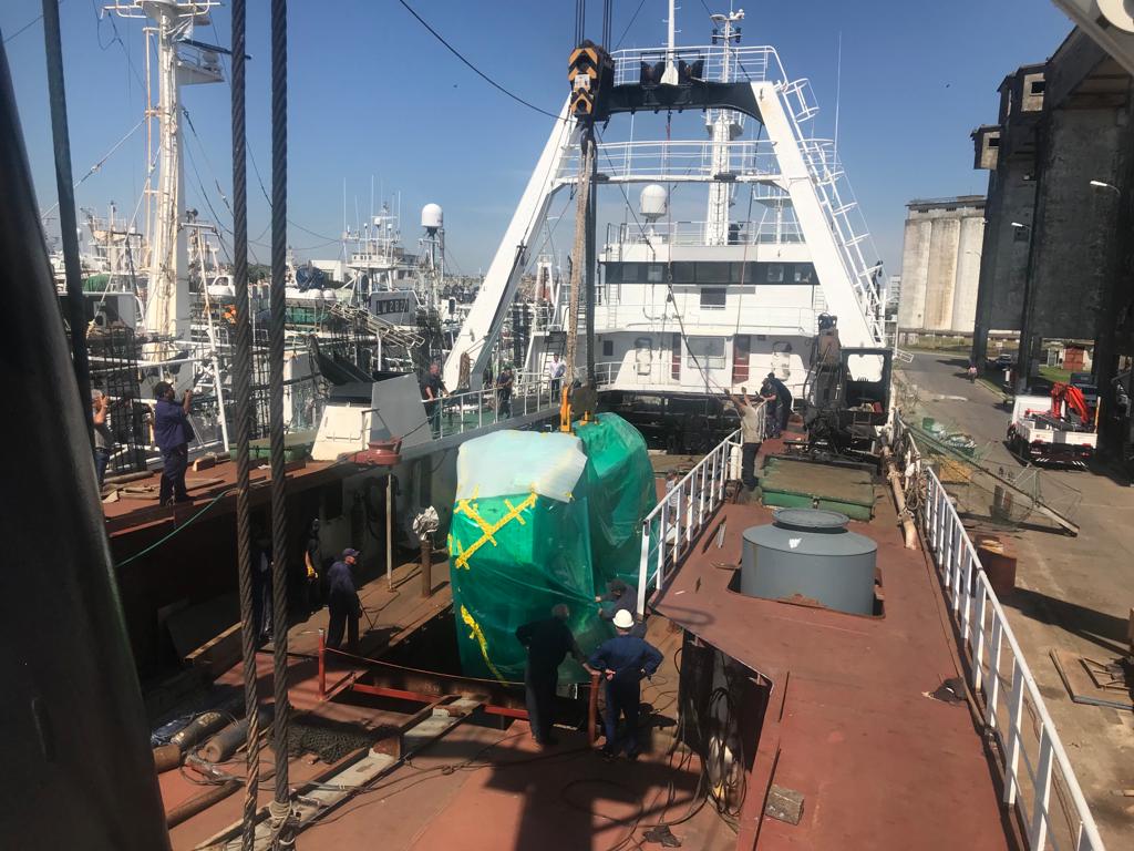 El metódico movimiento de las personas que trabajaron en el lugar, no dejó de asombrar a operarios acostumbrados a estas cuestiones, ya que el potente motor de 5.000 HP y sus 50 toneladas de peso, por sus dimensiones fue digno de admiración por quienes estaban transitando la sección 12 del muelle de ultramar del puerto de Mar del Plata en una maniobra que es digna de destacar, de tan solo 40 minutos, el motor en cuestión, pasó del muelle a estar abulonado al asiento del buque en su destino final.