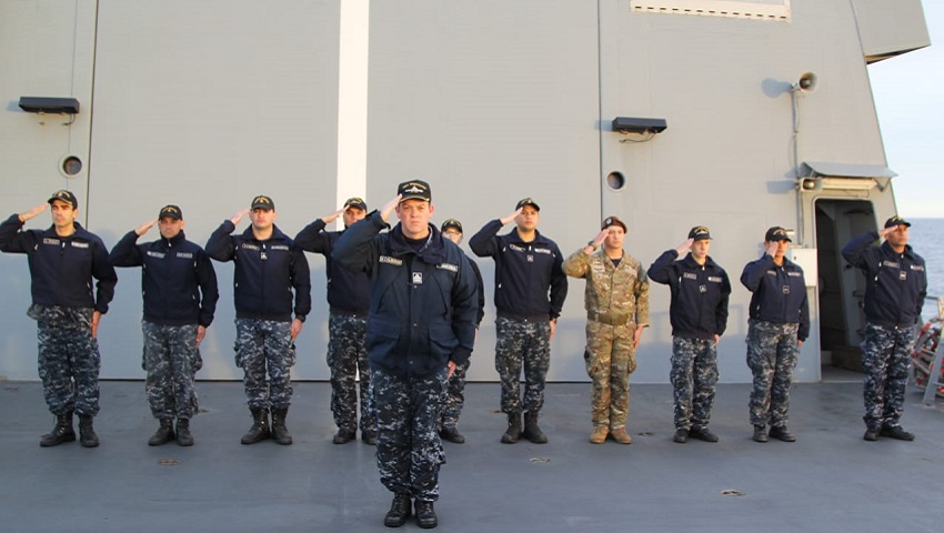El acto se realizó mientras la tripulación del ARA Bouchard navegaba en proximidades de la posición donde el submarino se hundió, como un reconocimiento solemne a los valientes marinos que ofrendaron su vida en cumplimiento del deber.