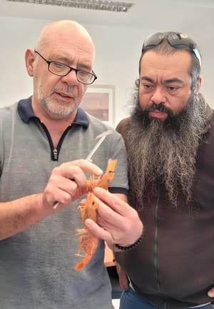 La capacitación se desarrolló los días 13 y 14 de abril en el Puerto Caleta Paula, en la ciudad de Caleta Olivia, y estuvo a cargo de los especialistas Juan de la Garza, –uno de los biólogos de mayor conocimiento de la especie pleoticus muelleri en el mundo-, y Emiliano Pisani, integrantes del Programa de Investigación de la Pesquería del Langostino del organismo científico.