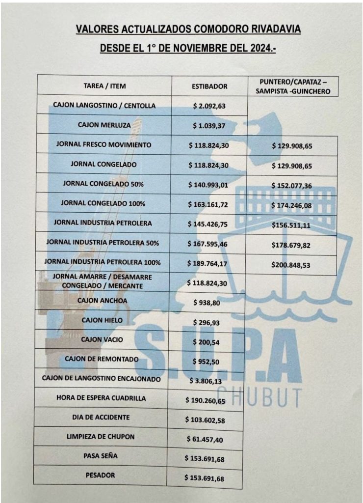 Desde el 1° de febrero de 2025 entraron en vigencia los nuevos valores de los jornales para los trabajadores de la estiba, una referencia clave para las negociaciones salariales con las empresas del sector. Estas mismas compañías operan también en Comodoro Rivadavia, por lo que las condiciones laborales y salariales deberían ser equitativas en ambas localidades por tratarse de idéntico trabajo. Así lo plantearon.
