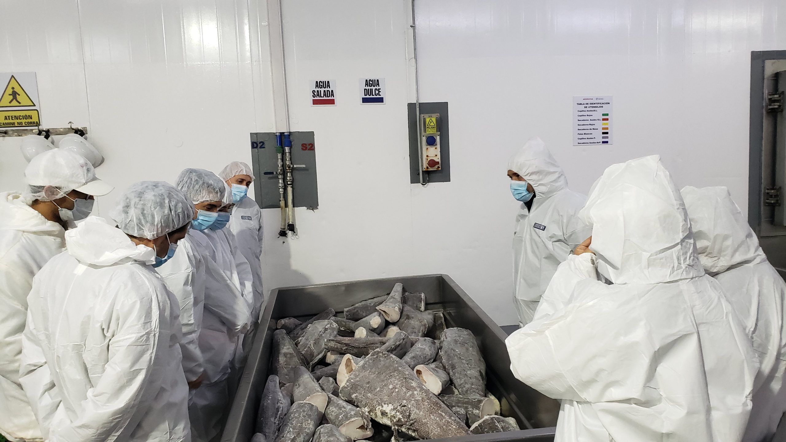 Luego de esta jornada, se realizó una visita a la descarga del Buque Potero “Vieirasa Dieciocho” en la planta de la empresa Argenova S.A., que pertenece al Grupo Nueva Pescanova, donde los participantes pudieron observar el proceso del calamar abordo y el reproceso en tierra.