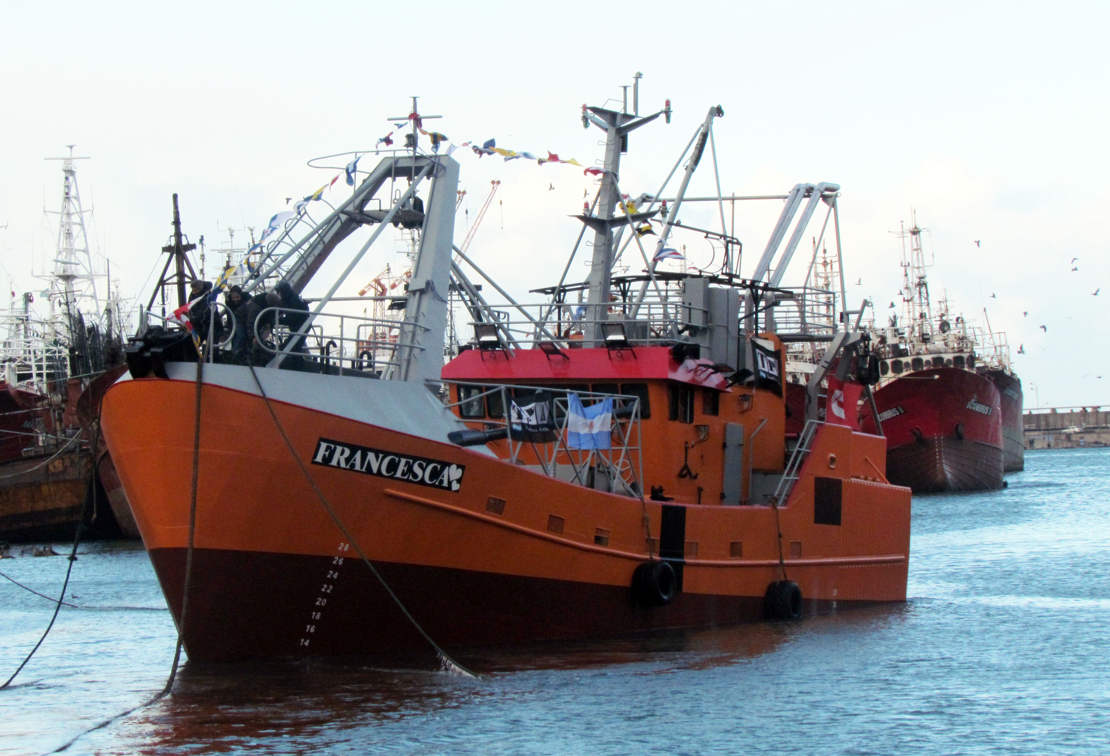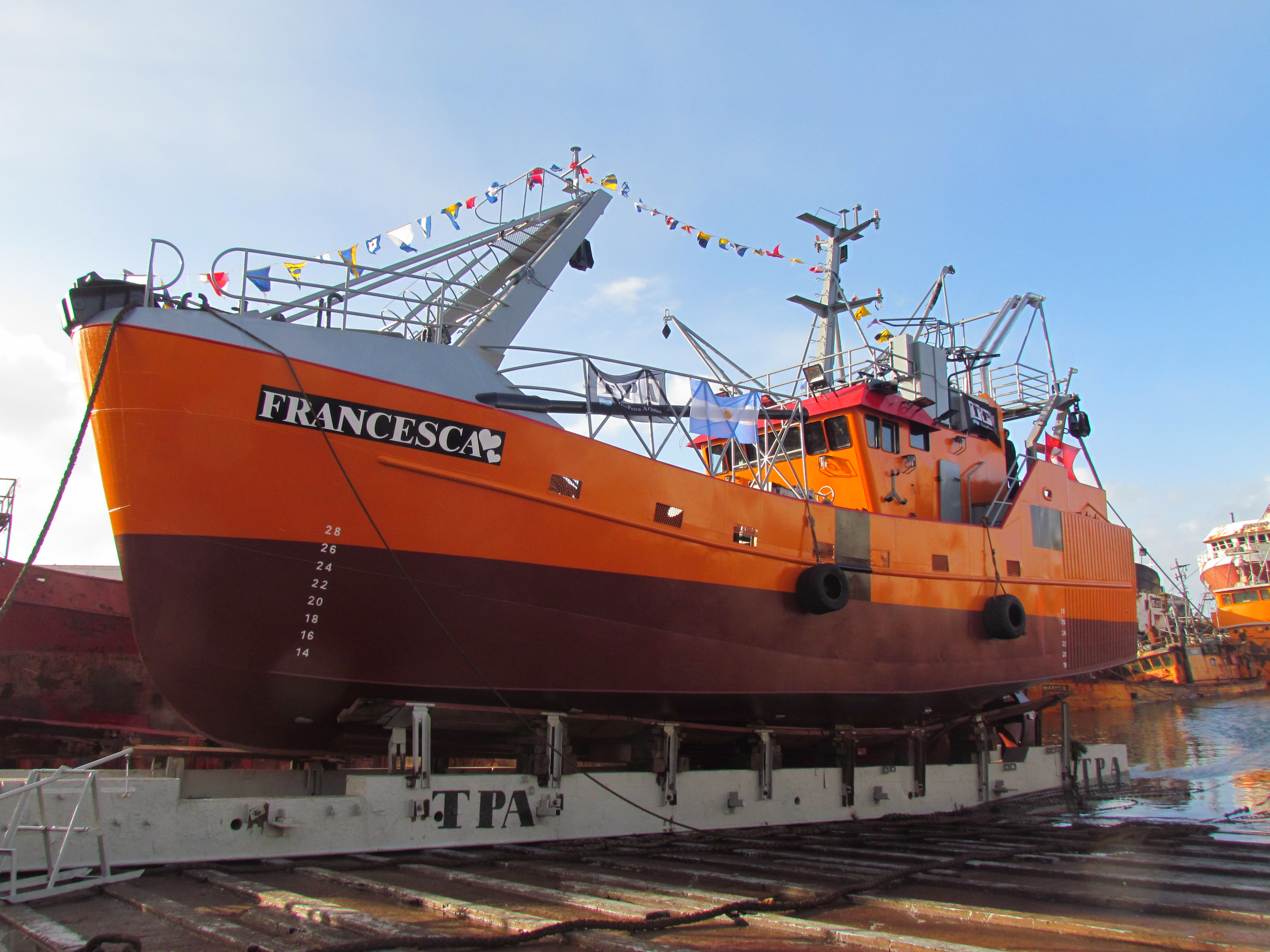 La muestra está en el “Francesca”, el buque que en esta fría y, por momentos lluviosa, tarde de sábado bajó desde el astillero TecnoPesca Argentina (TPA). La unidad tendrá puerto de asiento en Mar del Plata con las especies de costa y las pelágicas como objetivos.