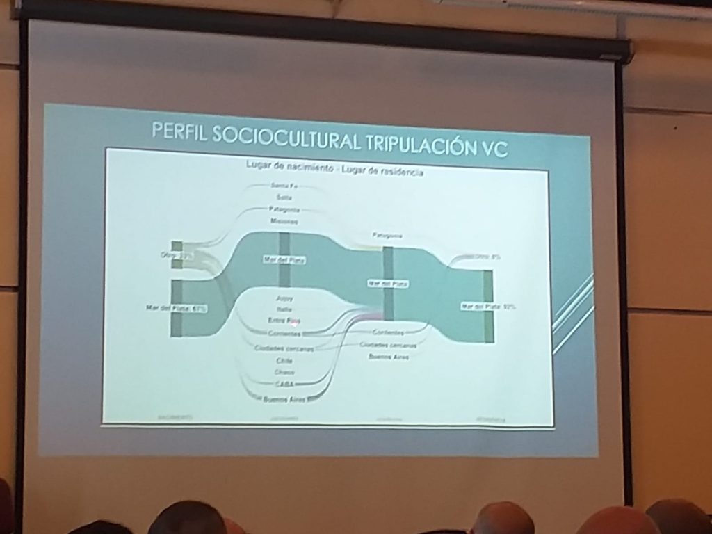 Los investigadores Diego Solimeno y Nerina Lagos fueron los encargados de mostrar el trabajo realizado sobre el Perfil sociocultural de la tripulación de la flota costera que opera sobre el variado costero desde el Puerto de Mar del Plata, con distintos datos como la cobertura de aportes jubilatorios y obra social (que alcanza al 92%) de los embarcados, quienes han sufrido accidentes laborales o quienes manifiestan secuelas o el estado de las embarcaciones en las cuales desarrollan sus tareas, además de mostrar otra arista del enfoque ecosistémico de la pesca en la Zona Común con la República Oriental del Uruguay.