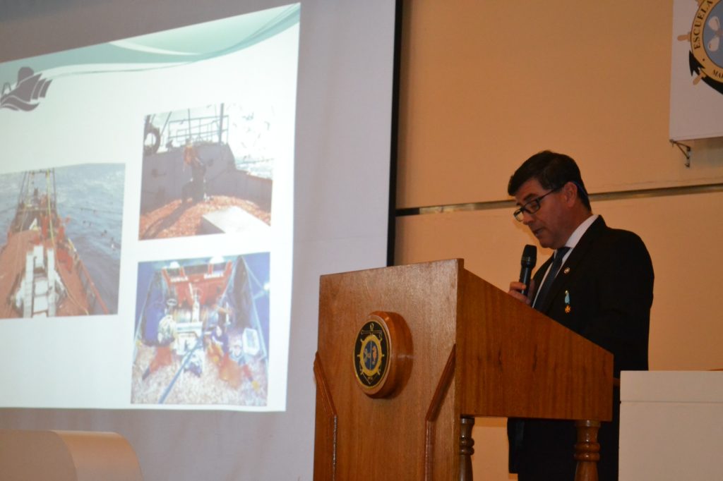 La primera de las exposiciones estuvo a cargo del Capitán de Navío Martín Méndez, quien realizó un “mapeo” de la milla 200, explicando de que modo trabaja la Armada Argentina para patrullar la zona, describiendo además cual es la jurisdicción de nuestro país, como se detectan los buques ante posibles infracciones a la Ley Argentina y de qué manera se realiza el VCR (Visita, Registro y Captura) de las embarcaciones que estuviesen en infracción a las normativas y las diferencias entre la contravención y el delito que pudieran estar cometiendo.