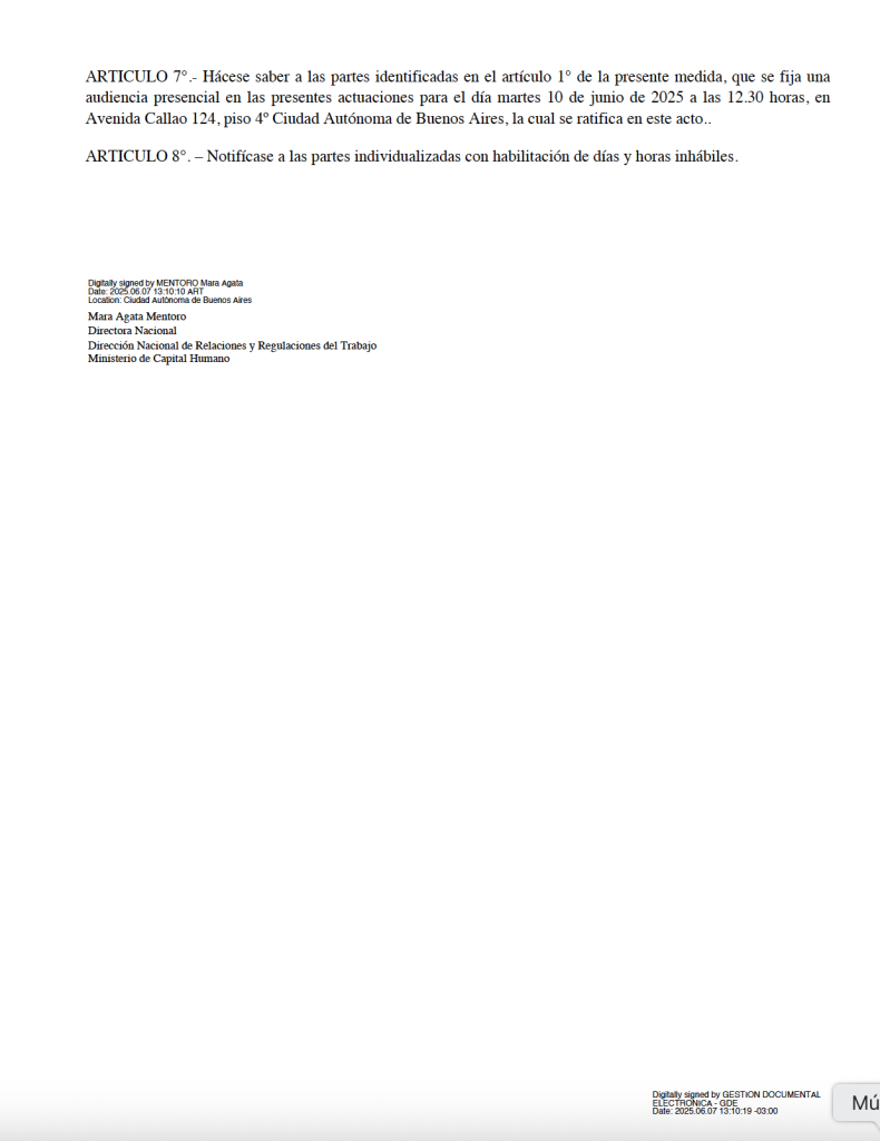 En ese marco, se convocó a una audiencia presencial para el próximo martes 10 de junio a las 12:30, en la sede del Ministerio, ubicada en Avenida Callao 124 de la Ciudad Autónoma de Buenos Aires.