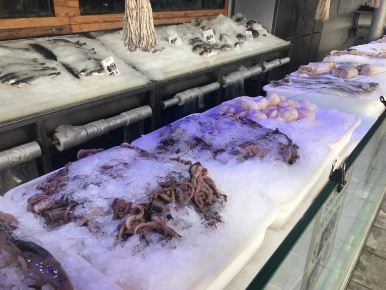 En la recorrida por varias pescader铆as marplatenses, los precios son dispares de acuerdo a su ubicaci贸n. En el paseo comercial lindante a la banquina chica, se puede conseguir calamar entero a $1400 los dos kilos, las rabas a $2400, la corvina a $750, la cola de langostino a $3100 y un mix de frutos de mar para paella o cazuela a $3700.