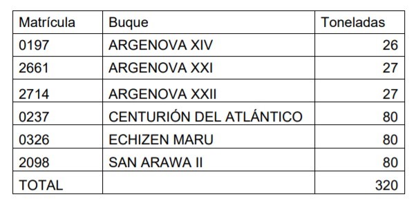 - Stock de caballa (Scomber colias) al NORTE 39°S: 14.200Tn.