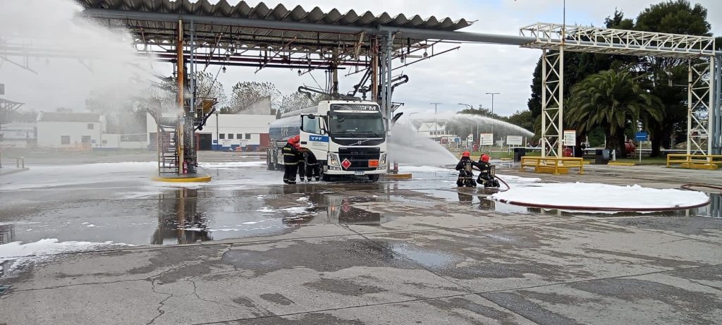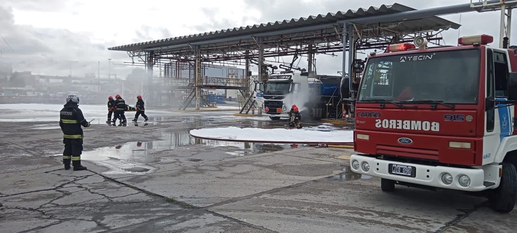 El ejercicio comenzó con una hipótesis de fuego que tuvo lugar en un camión cisterna que se encontraba en una isla de carga.