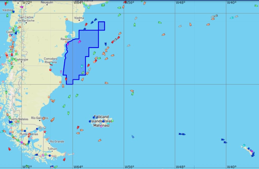 Ya en el perfil marítimo argentino no quedan buques pesqueros de bandera, mientras que el dominio de las actividades pasa por grandes cruceros (azul) cuyo destino son los canales fueguinos, Ushuaia, Islas del Atlántico Sur y fundamentalmente la Antártida, cargueros (verde) de paso desde Cabo de Hornos y Beagle a Rio de Janeiro/Santos y Buenos Aires provenientes de la costa Oeste de los Estados Unidos de América y algunos petroleros (rojo) con idéntico destino.