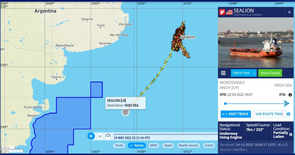 También operan alrededor de esa misma flota, otros buques proveedores de combustible que abastecen en Montevideo, como el Hai Xing, Jason y Sealion, todos viejos conocidos de nuestro querido ARA San Juan que se ocupaba de identificar a cada uno de ellos.