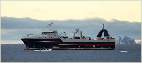 Más al Sur, sobre los alrededores de las Islas Orcadas del sur, la flota Krillera de noruega con verdaderos laboratorios flotantes de última generación, arrasan grandes cantidades de krill a media agua y lo procesan de inmediato para realizar cápsulas de aceite de krill rico en omega 3, otros subproductos para la industria farmacéutica y con los excedentes residuales, elaboran alimento balanceado para la acuicultura fundamentalmente salmonera de Noruega, con negocios mega millonarios.