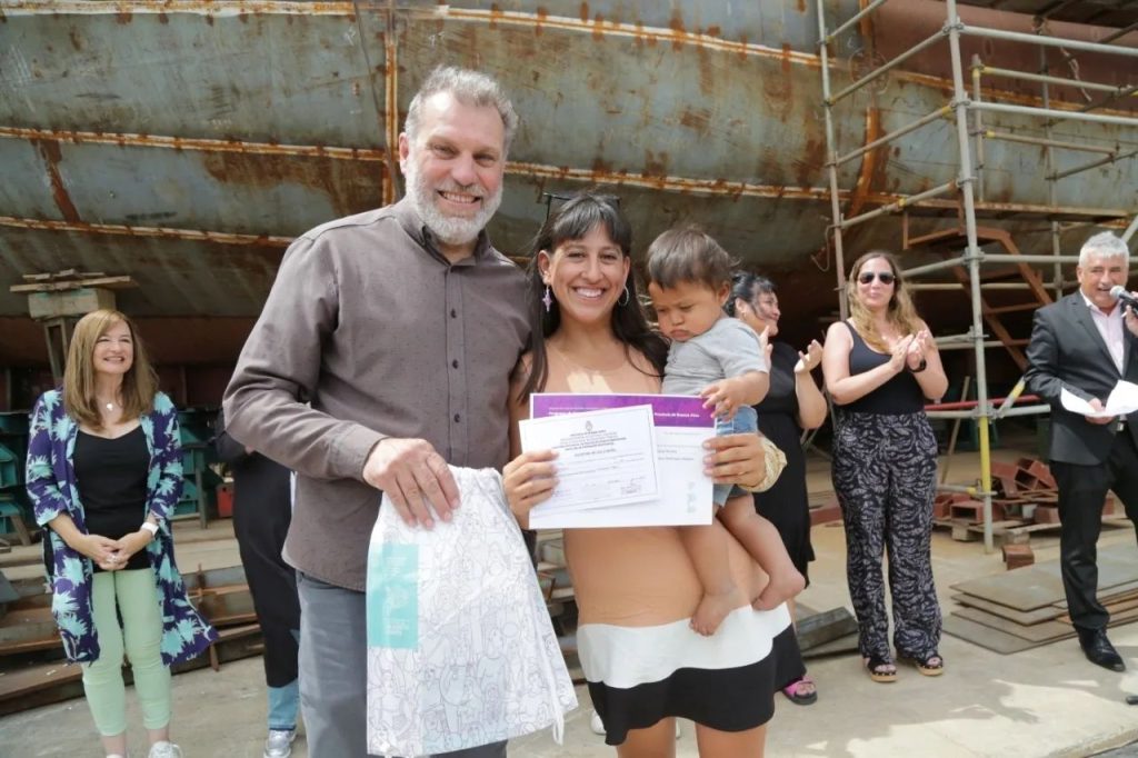 Con este acto, el puerto ya cuenta con 12 nuevas soldadoras a través de los conocimientos recibidos en el Centro de Formación Profesional nro. 418 de Mar del Plata, donde participaron, entre varias autoridades, el Presidente del Consorcio Portuario Regional Mar del Plata Gabriel Felizia, la titular del Ministerio de las Mujeres, Políticas de Género y Diversidad Sexual Estela Díaz, la Directora Nación de Educación, Trabajo y Producción del INET Nora Estrada, el director provincial de Formación Profesional Andrés Contreras y la Presidenta de la Asociación Bonaerense de la Industria Naval Sandra Cipolla, como así también representantes del Sindicato Argentino de Obreros Navales de la República Argentina, entre otras autoridades.