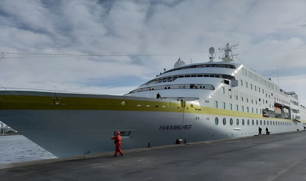 Se trata del buque de pasajeros Crucero “HAMBURG” (IMO 9138329), bandera de conveniencia de Bahamas, que arribó con 322 pasajeros y 155 tripulantes, procedente de Buenos Aires, como último puerto, y zona de fondeo rada exterior Montevideo, con escala para luego zarpar rumbo a Ushuaia.