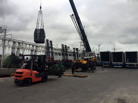 Según datos preliminares, durante la primera quince se descargaron 13.874 toneladas y el global acumulado sobre los muelles bordea las 80 mil.