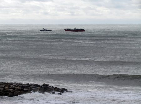 El potero se quedó sin máquina en la salida del puerto. Intervino el remolcador “Cuarteador†en medio de un fuerte oleaje.
