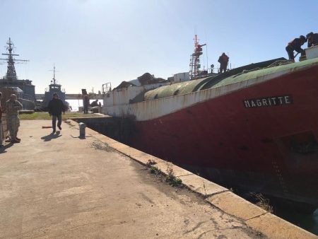 La obra va llegando a su fin. El BP Magritte espera horas para alcanzar la pleamar y con la misma subir a varadero de la BNMDP lo que quedo de su casco. Estiman mediados de marzo para finalizar por completo el desguace del mismo.