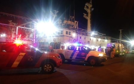 Intervino la Brigada de Emergencias que conformó el Consorcio Portuario y se utilizaron las nuevas estaciones dispuestas en el muelle.