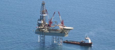 El buque perforador del subfondo marino, Valaris DS-17 yace en rada exterior de Mar del Plata abasteciendo de insumos y varios contenedores de elementos a utilizar en la perforación del pozo Argerich-I, próximo a realizarse con algo de retraso respecto a su planificación.