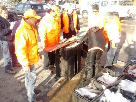 Cuando comienza a perfilarse el final de la zafra, ganan en calidad los ejemplares que llegan al muelle. Presentación de los costeros para ingresar a Zona de Veda de Merluza.