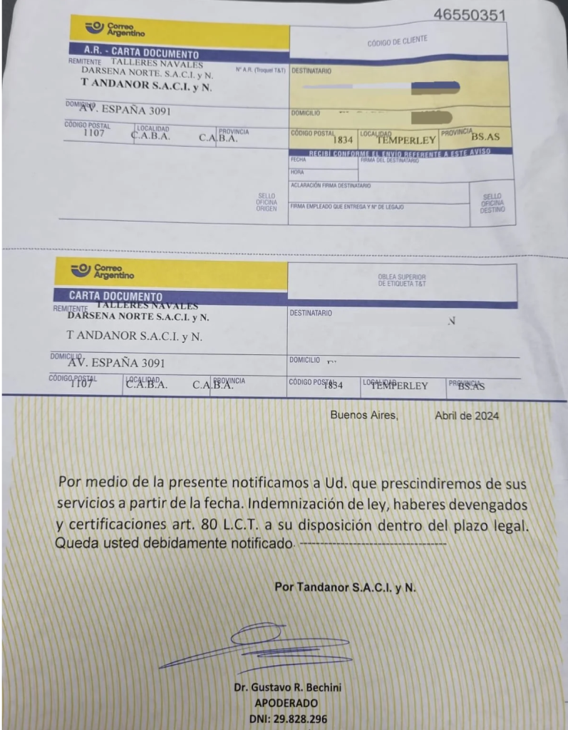 La medida se tomó de forma sorpresiva, comunicándose a los empleados al momento de ingresar a sus puestos de trabajo. Entre los despedidos se encuentran 3 mujeres y 46 hombres de diversos sectores, incluyendo la Dirección de Ingeniería y Construcciones, el área de Carenado, Calderería, el sistema Syncrolift, Administración, Cobrería, y otras áreas.