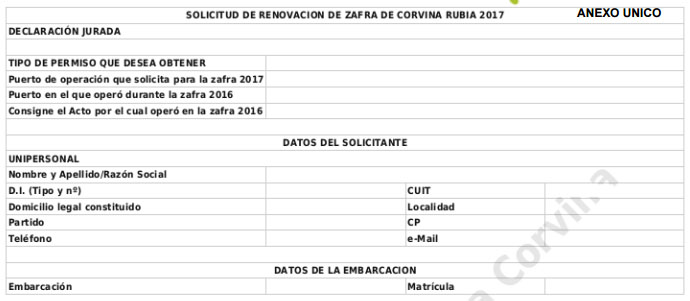 “Para la presentación de la solicitud, el interesado deberá haber retirado el permiso o autorización de pesca correspondiente a años anteriores, para la especie corvina, y contar para 2017 con permiso o autorización de pesca vigente para especies variadas en zona marítima. Caso contrario, la solicitud se tendrá por no presentada”, fija la disposición.