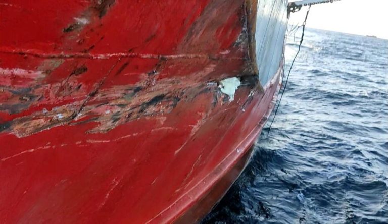 Toda la tripulación abocada a la maniobra de evaluación de la situación arrancha la estructura y corrobora un daño en el casco a una altura aproximada de 2.5m desde el nivel del mar, de aproximadamente unos 20cm de ancho que perforó en la zona de cuchetas de un camarote a babor; mientras que en el BP Patagonia, la torcedura del tangón inutilizado era también amarrado para evitar incidentes mayores a bordo. Los dos buques a puerto, reparaciones mediante, y la pérdida de dÃas de trabajo en una zafra de langostino que se afianza en descargas pero que ascendió al norte muy rápidamente, por lo que se prevé algo mas corta de lo habitual.