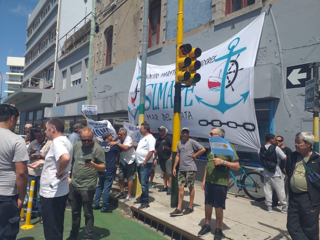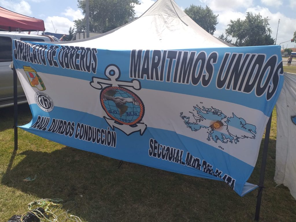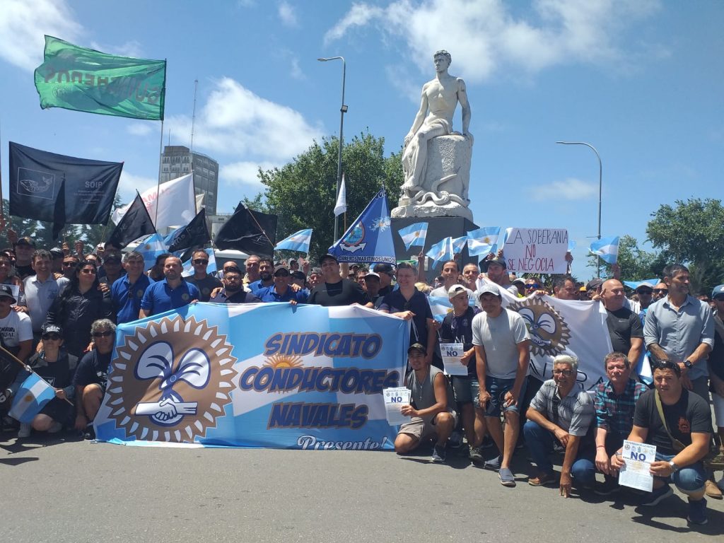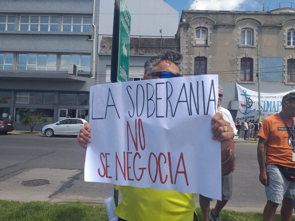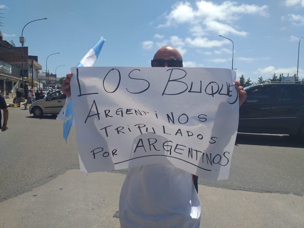 Muchos de los trabajadores se acercaron con pancartas confeccionadas a mano con leyendas tales como “La Soberanía no se negocia”; “Los buques argentinos tripulados por argentinos”; “No a la entrega del mar argentino”.